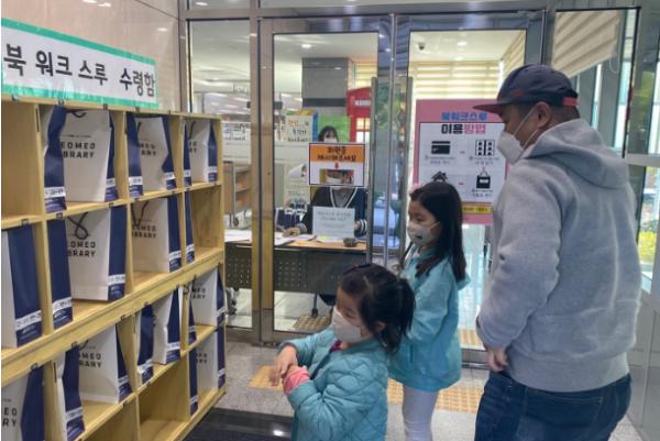 북워크스루 서비스는 대면접촉을 최소화하면서 도서를 대출하는 서비스로, 도서관별로 매일 30명의 선착순 신청을 받아 매주 수요일과 토요일 오후 2시부터 도서관 입구에서 5권의 책을 빌려준다. 특히 22일은 세계책의 날을 기념하고 화훼농가에 도움을 주기 위하여 장미꽃도 함께 선사할 예정이다.