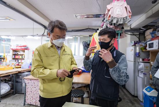 구는 ‘지역 봉제조합’과 ‘국민안심마스크 제작협의회’와 함께 힘을 합쳐 국민안심마스크의 효율적인 생산·공급 협력체계를 가동하기로 합의했다. 또한 10만 장을 구매하기로 하고 30% 선급금을 먼저 봉제업에 지급했다.
