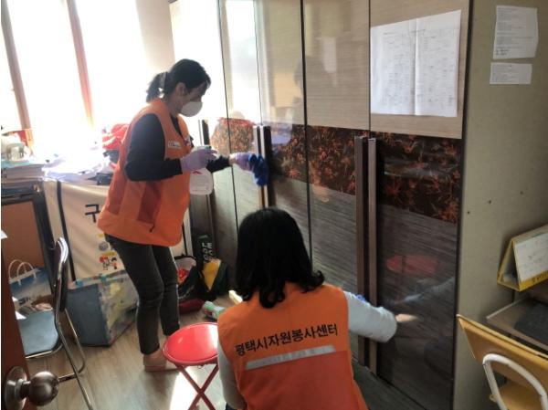 평택시자원봉사센터(센터장 방미옥)는 4월 14일, 16일까지 2일간 관내 아동시설 방역 및 소독활동을 진행했다.