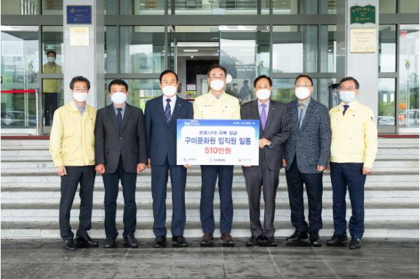 또한, 향토고유문화를 전승, 보전하고 지역문화교육에 앞장서고 있는 구미문화원(원장 라태훈)에서도 임직원들이 십시일반으로 모은 성금 510만원을 전달하였으며, 장애인 가족과 당사자가 주체적인 삶을 추구할 수 있도록 지원하고 있는 사단법인 경상북도장애인부모회 구미시지부(지부장 조현자)에서도 성금 130만원을 전달하였다.