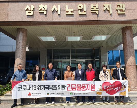 삼척시노인복지관에서는 강원도노인복지관협회(협회장 이영신)와 코로나19 위기극복을 위한 긴급물품지원 전달식을 가졌다.