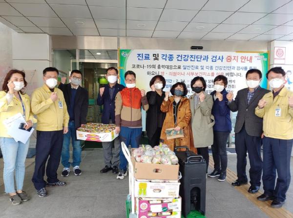 진주지역자활센터(센터장 김소형)는 지난 13일 오후 보건소 및 진주시 재난안전 대책본부 등 코로나19 확산 방지를 위해 힘쓰고 있는 곳을 찾아 100만원 상당의 컵과일 300개와 커피를 전달했다.