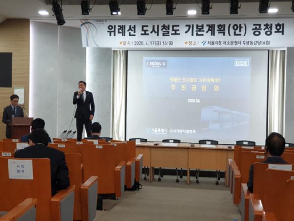 17일 서울시청 서소문청사 후생동강당(4층)에서 위례선 도시철도(트램) 기본계획안 설명을 위한 주민공청회가 개최되었다.
