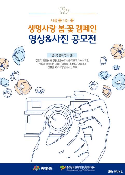 공모 주제는 생명의 소중함, 생명사랑, 생명존중 인식문화 확산 등 자살 예방 관련 내용이며 봄꽃을 활용해 자살을 생각하는 사람들에게 전달할 수 있는 희망과 응원의 메시지를 담으면 된다.