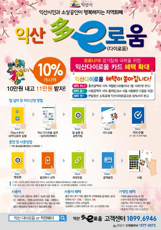 한편 지난 31일 기준 익산시가 발행한 지역화폐 ‘다이로움’은 91억여원 규모로 총 1만 7천여명이 가입해 사용하고 있다.