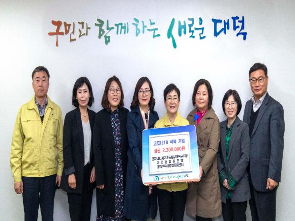 한자녀더갖기운동본부대덕구지부(지부장 윤선례), 마더쉼협동조합(대표이사 윤선례), 대덕구육아종합지원센터(센터장 정영미)가 지난 17일 코로나19 극복을 위한 성금 230만 원을 대덕구(구청장 박정현)에 기탁했다.
