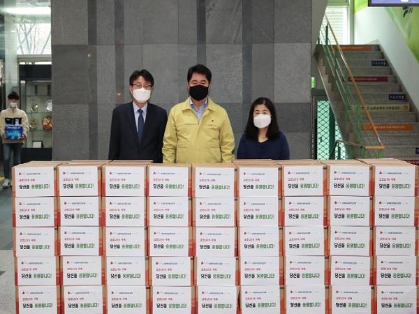 박준희 구청장은 17일 오전, 구청 1층에서 위문품 전달식을 갖고 동 주민센터로 위문품을 전달했다.