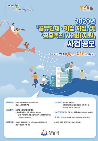 공모 참여 자격은 최근 6개월 이상 공유사업을 한 이력이 있는 성남지역 소재 비영리 민간단체, 법인, 기업이다.