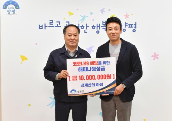 청계산의 아침은 양평군에 있는 전원주택 업체로서 지역사회에 어려움이 있을 때 도움이 되고 싶다며 성금 1,000만원을 흔쾌히 전달하였다.