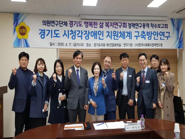 연구용역 착수보고회에는‘경기도 행복한 삶 복지연구회’권정선 회장을 비롯해 박형규 경기도의회 입법정책담당관, 김용범 경기도 장애인복지과 팀장, 김종인 교수(한국사회복지정책연구원 이사장) 등이 참석했다.