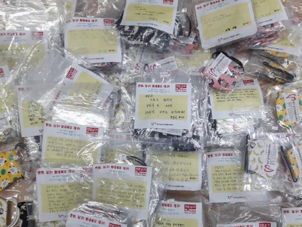 또한, 어린이 감염 예방에 특히 주의를 기울여야하는 어린이집 선생님을 위해 대구광역시 서구에 위치한 ㈜보광 아이엔티에서 코로나 극복을 위해 보내준 성인용 면마스크 300개를 어린이 마스크와 같이 전달하였다.