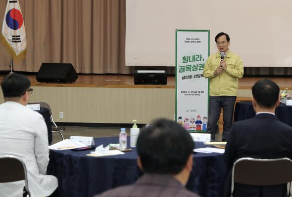 광산구(구청장 김삼호)는 17일 구청에서 코로나19 극복과 골목상권 활성화를 위한 ‘힘내라, 골목상권! 상인회 간담회’를 열고, 18개 상인단체 대표와 경제 자문 전문가의 이야기를 들었다.