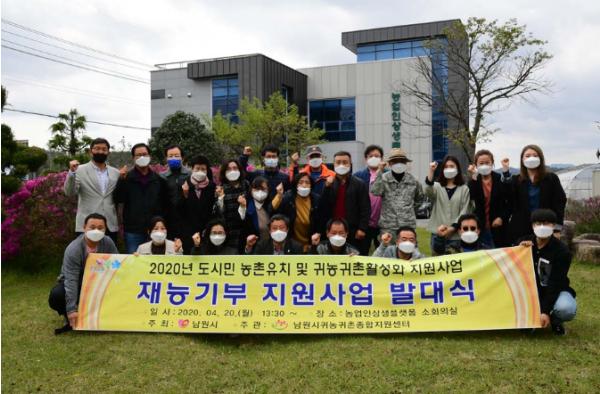 남원시가 20일 농업인상생플랫폼에서 재능기부단 및 동아리 발대식을 개최하고, 귀농귀촌인과 지역민의 활발한 교류활동을 본격적으로 지원할 계획이다. 이를 위해 시는 앞서, 지난달 귀농귀촌 재능기부단 및 동아리 지원사업 신청을 받아 심사 끝에 재능기부단 5팀, 동아리 18팀을 선정했다.