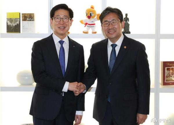 양승조 지사는 20일 정부 세종청사를 방문, 박양우 문화체육관광부 장관을 만났다.