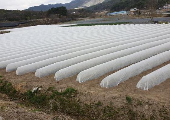 부직포 터널재배는 고추를 아주심기한 후 그 위에 일반 부직포에 비해 두께가 절반 정도 얇은 일라이트 부직포를 터널 형태로 씌우는 방식으로 빛 투과율이 높고 보온효과도 뛰어나다.