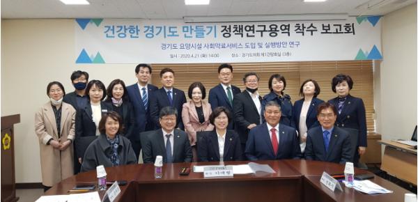 경기도의회 의원연구단체‘건강한 경기도 만들기’(회장 이애형, 통합당, 비례)는 21일 오후 2시 경기도의회 제1간담회실에서‘경기도 요양시설 사회약료서비스 도입 및 실행방안’연구용역 착수보고회를 가졌다.
