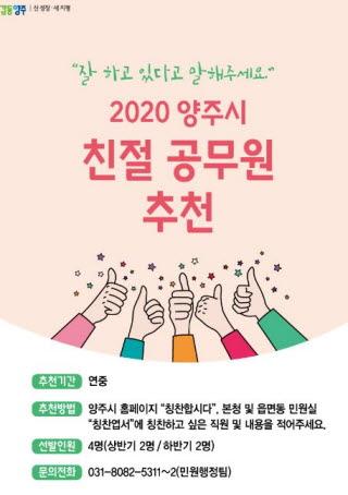 양주시(시장 이성호)가 양주시민이 추천하는 2020년 친절공무원을 선발한다.