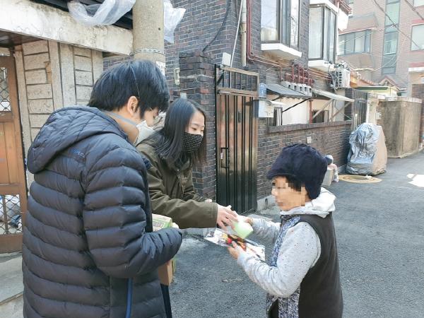 기초생활수급대상자, 차상위 등 저소득층 250가구에 면 마스크 600매와 손세정제 300개를 전달하고, 만 75세 이상 어르신 67가구에는 건강 선식 각 1박스를 추가로 전달했다.