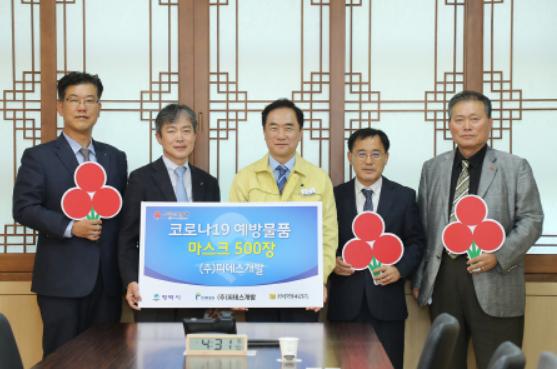 ㈜피데스개발(대표 김건희, 김승배)은 지난 21일 평택시청 대외협력실에서 지역사회 코로나19 감염 및 확산 방지를 위해 아동용 마스크 500장(275만원 상당)을 기탁했다.