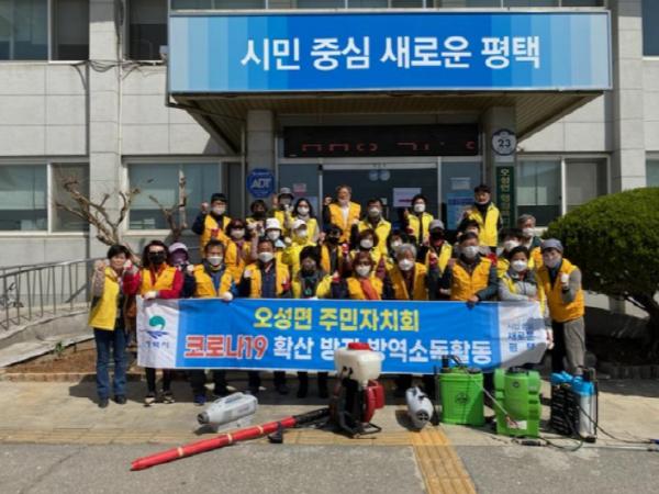 평택시 오성면 주민자치회(회장 김경현)는 지난 21일 코로나19 확산 방지를 위한 관내 학교 방역 활동을 실시했다.
