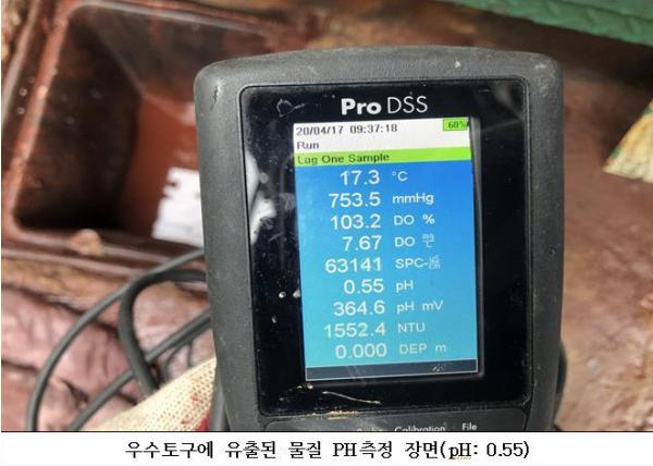 시는 4월 17일 오전 8시경 옥구천(옥구6교)에 붉은색 폐수가 나온다는 민원을 접수했다. 비상연락을 통해 즉시 현장에 출동해 확인한 결과, 원인불명의 붉은물이 우수토구에서 흘러나오고 있는 사실을 확인하고 우수맨홀을 확인하며 약 150m를 역추적한 결과 D업체에서 유출되고 있는 사실을 적발했다.