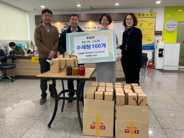 김수진 대표는 “작은 나눔이지만, 거동이 불편한 독거어르신들에게 조금이나마 도움이 되길 바란다.” 고 소감을 밝혔으며, 이날 전달된 수제청은 동두천노인복지관 생활지원사들을 통해 독거어르신 100분께 배분될 예정이다.
