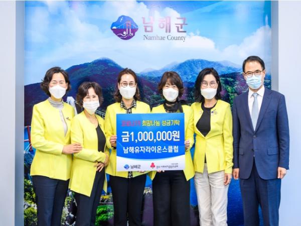 남해유자라이온스클럽 최말녀 회장은 “코로나19를 빨리 극복하기 위해 회원들이 한마음이 되어 정성을 모았다. 지역사회 감염 예방과 어려운 분들의 위기 극복에 조금이나마 보탬이 됐으면 한다"며 기탁 사유를 밝혔다.