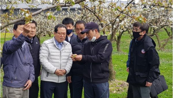 조광한 남양주시장이 지난 21일 배 꽃눈 저온피해 현장을 직접 방문하여 농업인을 위로하고 애로사항을 청취하는 등 구체적인 피해 상황을 살폈다.