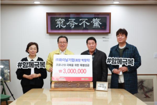 남양주시 ㈜화이날기업(회장 박창작)에서 22일 코로나19 위기 극복을 위한 후원금 300만원을 경기 사회복지공동모금회에 전달했다.