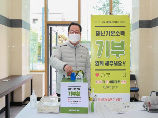 조광한 시장은 22일 다산행정복지센터를 방문하여 경기도 재난기본소득 선불카드로 받은 40만원을 `10% 더 아름다운 소비’운동에 기부했다.