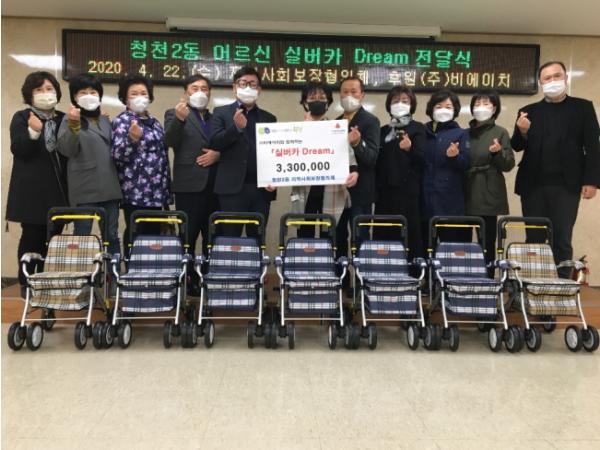 이번 실버카 전달은 ㈜비에이치의 후원을 받아 기획한 사업으로, 거동이 불편한 노인들이 실버카를 이용해 외부활동을 편하게 하고 이를 통해 외로움 해소 및 건강한 삶을 보낼 수 있도록 돕기 위해 마련됐다.