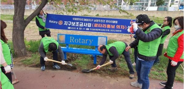 국제로타리 3600지구 남양주진건로타리클럽(회장 김금범)은 지난 22일 지구보조금 사업의 일환으로 주민들의 휴식공간 제공을 위한 3차 로타리 홍보의자(야외 벤치)를 설치했다.