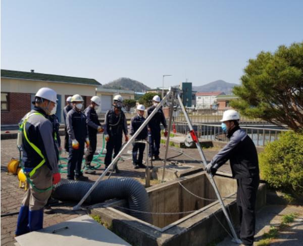이번 훈련은 최근 밀폐공간 작업 중 연이은 질식사고의 발생으로 사회적 우려가 높아짐에 따라, 맨홀 등 밀폐공간 작업기회가 잦은 환경기초시설과 하수관로 현장 근무자들의 밀폐공간 작업 시 매뉴얼 습득을 통한 질식사고 예방을 위해 실시하였다.