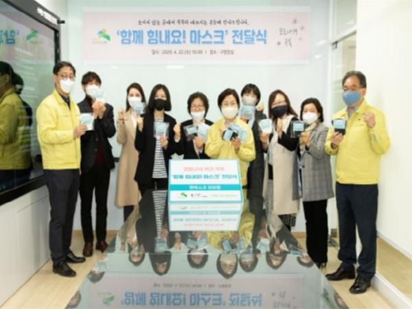 은평구는 22일 ‘함께힘내요! 마스크’를 제작하여 은평구 노동자종합지원센터에 전달했다. ‘함께힘내요! 마스크’는 은평구 공동주택 공동체 활성화 단체 회원 및 입주민이 2주간 손바느질과 재봉틀을 이용하여 직접 제작한 면마스크로 은평구 노동자종합지원센터는 아파트 경비원과 미화원 등에게 지급할 예정이다.