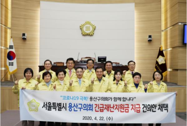 용산구의회(의장 김정재)는 4월 22일 제255회 임시회 제2차 본회의에서 코로나19 사태로 경제적 어려움을 호소하는 국민을 구제하고 민생 경제를 살리기 위하여 정부가 긴급재난지원금을 신속히 지급할 것을 촉구하고자「긴급재난지원금 지급 건의문」을 발표했다.