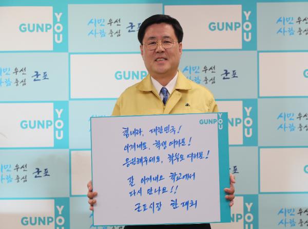 한대희 군포시장은 코로나19 극복을 위한 희망캠페인 릴레이에 동참하면서 자신의 페이스북을 통해 학생과 학부모들을 응원하는 메시지를 전했다.