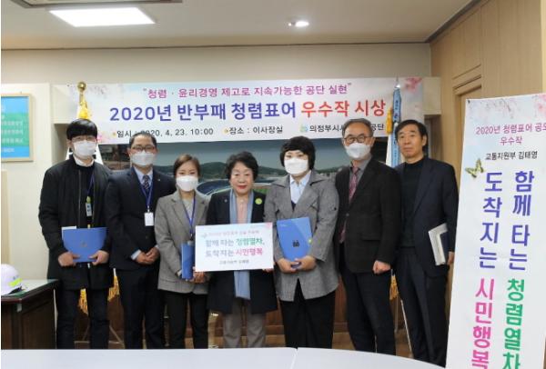 의정부시시설관리공단(이사장 강은희)은 공단 임직원을 대상으로 “반부패 청렴표어” 공모전을 개최하고, 4월 23일 청렴표어 우수작에 대하여 시상식을 개최하였다.