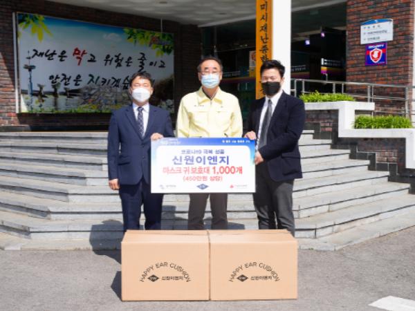 24일(금) 자동차?휴대폰 부품 사출 및 액세서리류 상품 생산?판매 업체인 신원ENG(대표 김용진)에서 구미시청을 방문하여 450만원 상당의 마스크 귀 보호대 1,000개를 후원하였다.