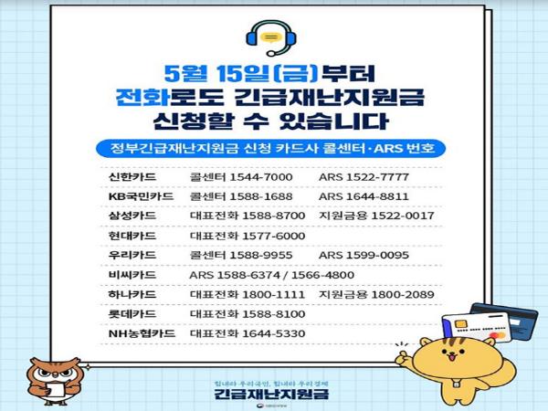 정부긴급재난지원금 신청 카드사 콜센터·ARS 번호