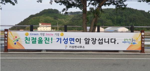 기성면 터미널 앞에 6개의 저단형 현수막 게시대를 설치하여 ‘코로나19 예방 생활 속 거리두기’, ‘친절울진’, ‘청정기성’ 등 군에서 추진하는 업무를 면민들에게 적극 홍보할 수 있는 계기가 되었다.