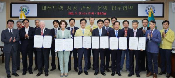 대전시는 27일 오후 3시 시청 중회의실에서 충남대, 한밭대, 배재대, 우송대 등 철도관련 주요 대학, 도시철도 운영기관인 대전도시철도공사와 ‘대전 트램의 성공적 건설을 위한 상호협력 업무협약’을 체결했다.