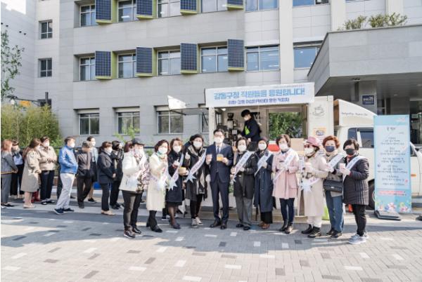 지난 23일 강동구(구청장 이정훈)에서 운영 중인 「이화-강동 여성아카데미」 회원들이 코로나19로 고생하고 있는 구청 직원들을 위해 ‘커피차’를 선물했다.