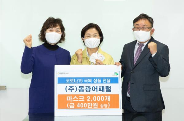 이날 올브랜드동광에서 기부한 면마스크는 품질을 인정받아 해외 수출을 앞두고 있는 우수한 제품으로, 지역 사회의 코로나19 감염 예방 및 확산 방지에 큰 도움이 될 것으로 보인다.
