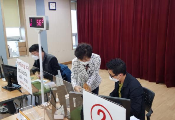의왕시의회 윤미근 의장은 지난 25일 관내 6개동에 마련된 경기도·의왕시 재난기본소득 접수 첫 주말을 맞이해 현장을 살피고 근무자들을 격려했다.