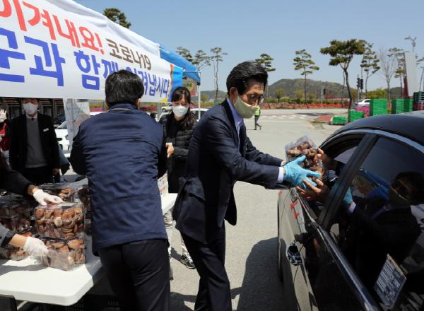 특히 코로나19로 사회적 거리 두기를 강조하는 상황에서 드라이브 스루 방식을 채택했다. 운전석에 앉아서 주문서만 내면, 판매원들이 뒷자리나 트렁크에 짐을 넣어준다. 시중가보다 30%가량 저렴한 최상품의 표고버섯을 구입 하려고 사람들이 몰렸다.