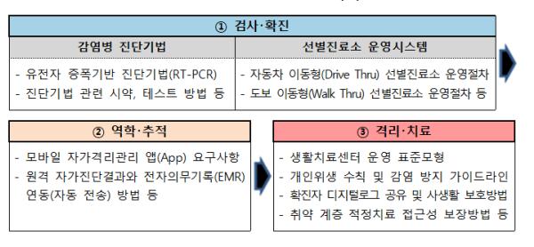 우리가 제안할 국제표준은 세계 각국이 앞다퉈 벤치마킹하고 있는 자동차 이동형(Drive Thru)·도보 이동형(Walk Thru) 선별진료소 검사운영절차, 생활치료센터 운영모형 등을 대상으로 진행할 계획이다.