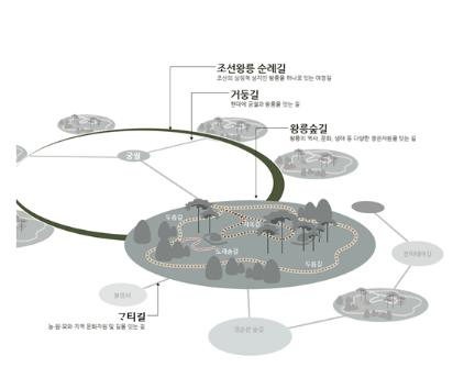 주제에 따라 ▲ 왕릉과 왕릉간을 연결한 ‘순례길’, ▲ 왕릉과 궁궐을 연결한 ‘거둥길’, ▲ 왕릉과 주변 지역을 연결한 ‘티길’로 나누고, 각 길들을 주제별로 다양한 관광·문화자원과 연계할 것이다.
