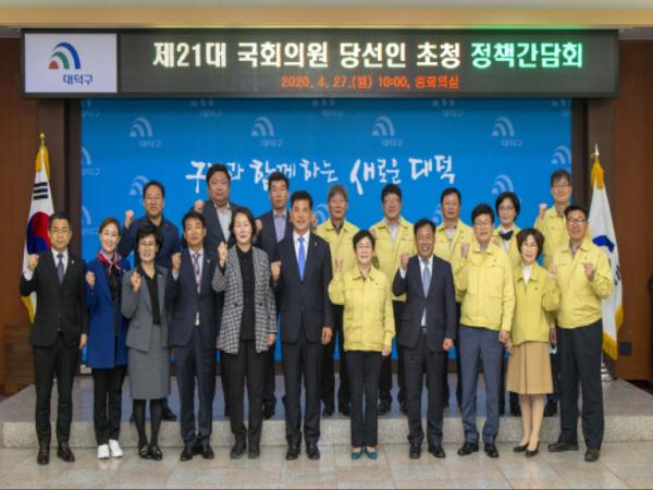 대전 대덕구(구청장 박정현)가 27일 구청에서 제21대 박영순 대덕구 국회의원 당선자를 초청해 구정발전을 위한 정책 간담회를 가졌다.