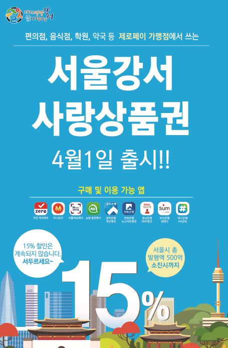 서울 강서구(구청장 노현송)는 코로나19 피해 극복을 위한 민생경제 지원방안으로 4월 1일부터 ‘서울강서사랑상품권’을 발행한다고 밝혔다.