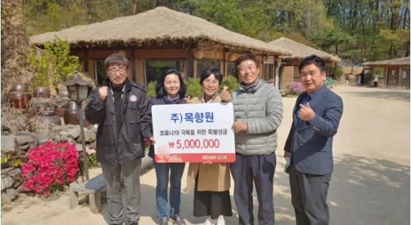 남양주시 별내동 소재 목향원(대표 한성우)에서는 지난 24일 코로나19로 어려움을 겪는 이웃을 위한 후원금 500만원을 경기사회복지공동모금회에 기탁했다.
